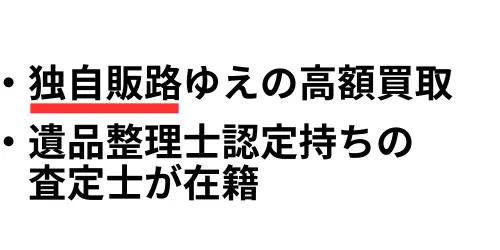 華丸の強みはなんといっても対象品目の広さではないでしょうか。他の買取店だと断られてしまうかもしれない大型の楽器でも買い取ってもらえるのは非常にありがたいです。また、遺品整理士が在籍しているので、大切な遺品処理にあたっても安心して依頼できますね。