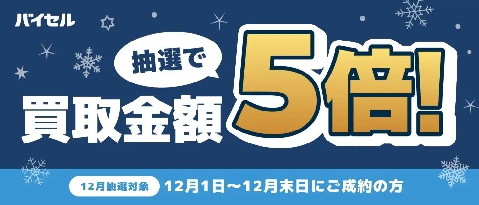バイセルは12月末日まで、抽選で買取金額が過去最大の5倍になるキャンペーンを実施中です。