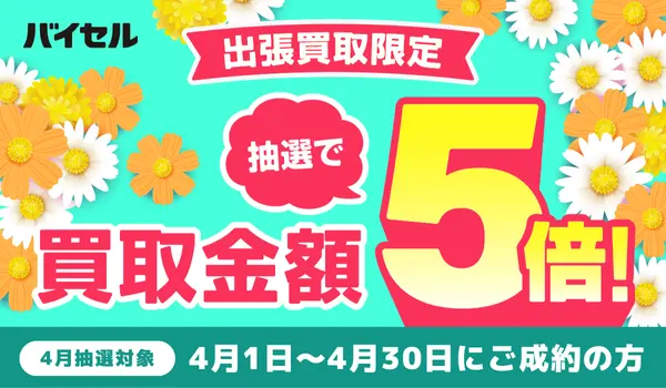 バイセルは4月末日まで、抽選で買取金額が過去最大の5倍になるキャンペーンを実施中です。