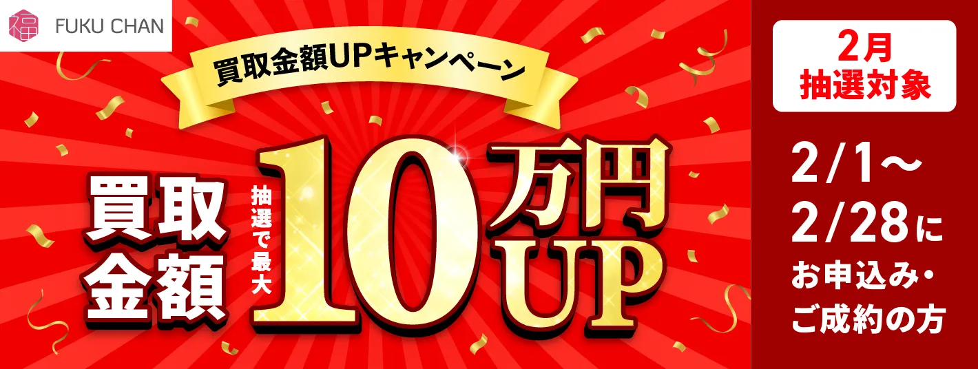 現在福ちゃんは、3月中にお申し込み頂いた商品対象で買取金額最大10万円UPキャンペーンを実施しています
