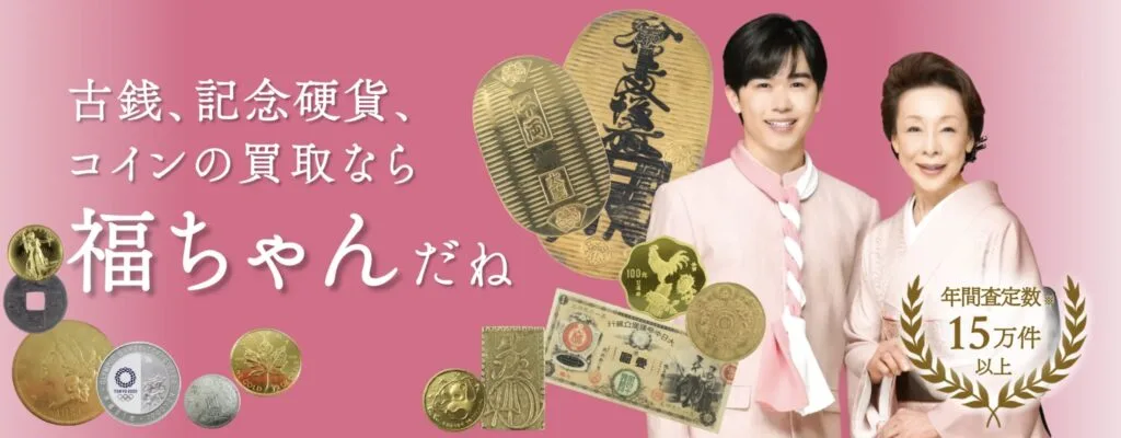 年間査定数15万件以上の実績を持つ福ちゃんは、池波志乃さん・鈴木福さんが出演しているCMでお馴染みです。 古銭に精通した査定士による価値に見合った買取価格提示が評価されています。